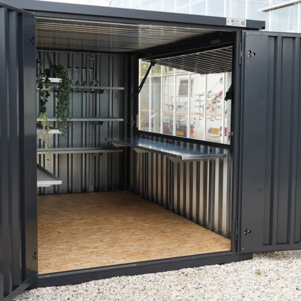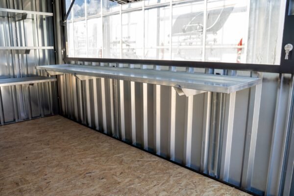 Mit einer Länge von 180 cm ist es ideal auf den Innenraum abgestimmt und lässt sich dort als praktische Thekenfläche einsetzen. Die kompakte Größe sorgt für eine flexible Nutzung innerhalb des Containers und unterstützt ein funktionales Arbeiten im Innenbereich.