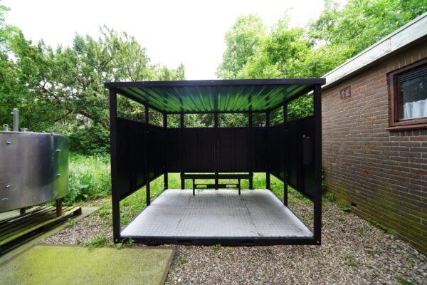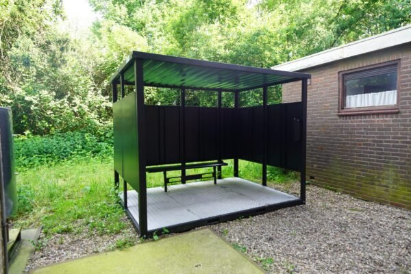 Suchen Sie einen abnehmbaren Rauchschutz, damit Ihre Kollegen einen Platz zum Rauchen im Freien haben? Dieser abnehmbare Rauchercontainer ist perfekt dafür geeignet, denn der Container hat ein Dach, damit Ihre Kollegen auch bei Regen oder Schnee trocken sitzen können. Außerdem müssen Sie sich keine Sorgen um herumliegende Zigarettenkippen machen, da der Container mit einem Aschenbecher ausgestattet ist, in dem die Kippen nach dem Rauchen entsorgt werden können. Der Container ist auch mit einer Bank ausgestattet, auf der Ihre Kollegen beim Rauchen sitzen können.