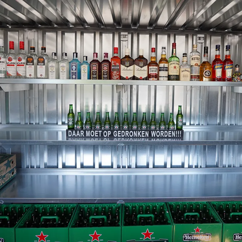 Die Einlegeböden in Ihrem zerlegbaren Barcontainer lassen sich gut mit ihnen kombinieren. Mit diesem Produkt können Sie jede Art von Barcontainer bequemer nutzen. Sie können das Regalpaket zum Beispiel in Ihrem Lagerraum verwenden, um Werkzeuge, Kisten und zerbrechliche Gegenstände, die nicht auf den Boden gestellt werden können, zu ordnen, oder in Ihrem Barraum, um verschiedene Gegenstände wie Alkohol, Gläser, Bücher usw. auszustellen. Wenn Sie den Container zur Aufbewahrung von Haushaltsprodukten verwenden, können Sie Kartons auf den Regalen stapeln, empfindliche Gegenstände darauf stellen oder sogar Ihre Kleinteile darauf anordnen. Wenn Sie sich für den Kauf dieser Containerregale entscheiden, werden Sie feststellen, dass Sie mehr Platz haben. Da die Regale in der Luft schweben, haben Sie immer noch die Möglichkeit, Werkzeuge oder Arbeitsplätze unter diesen Regalen einzurichten. Das Regal selbst ist aus demselben Stahl wie der Barcontainer gefertigt, so dass Sie die Regale auch voll beladen können, ohne sich Gedanken darüber machen zu müssen, ob das Regal das Gewicht tragen kann